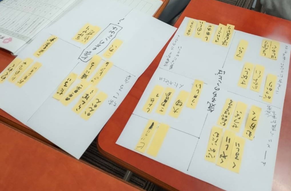 「どんなときに使うだろう…」と、付箋に書かれた言葉を一緒に考えていきます。